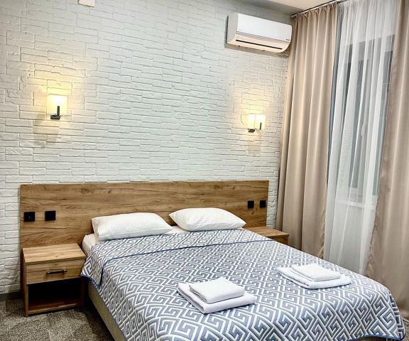 Стандартный трёхместный номер оснащен одной двуспальной кроватью, разборным диваном на одно спальное место (или разборным креслом на одно спальное место, или одной односпальной кроватью), кондиционером, мини холодильником, телевизором, сейфом и санузлом. К услугам наших гостей в номере - набор косметических средств (гель для душа, шампунь, мыло), вешалки, рожок для обуви, доступ в интернет wi-fi, а также бесплатная парковка (1 парковочное место на номер), детская площадка, зоны для отдыха и зона барбекю.