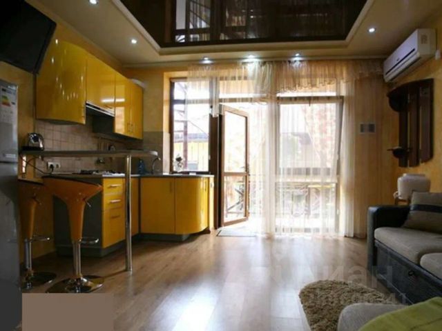 Номера рассчитаны на проживание до 4-х человек. В номере: двуспальная кровать, двуспальный диван, кондиционер, ТВ - кабельное, интернет Wi-Fi, оборудованная кухня со всем необходимым, холодильник, сан узел с душевой кабиной (горячая/холодная вода постоянно). Вход в номер индивидуальный - по винтовой лестнице на второй и третий этажи. Вид с номера - во двор (на тихую улочку без машин). Также есть смотровая площадка с шезлонгами, с видом на море и весь посёлок (общая для всех шести номеров). Смотровая площадка расположена на четвертом этаже в одном из домиков. Таких номеров в доме - 6, т.е. два рядом стоящих домика по три этажа в каждом (что удобно для компании из нескольких семей). Номера отличаются между собой цветом кухонь. Расстояние до моря около 450 метров, приблизительно, 6 минут не спешным шагом. Путь к морю через парковую зону. Рынок и магазинчики находятся в 1,5-2 минутах ходьбы от апартаментов. Двуспальная кровать Диван двухместный Кухня, посуда Сан узел с душевой Кондиционер ТВ Wi-Fi. Автостанция 100 м. Рынок 200 м. Магазины 100 м. Море 450 м.