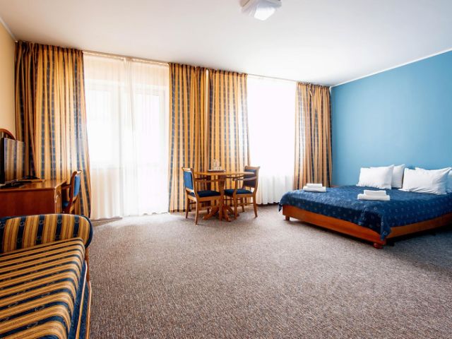 Это одна из комнат трехкомнатных апартаментов, которые находятся на 2 этаже, главного корпуса, и состоят из 3 раздельных комнат, большого холла-гостиной, ванной комнаты и дополнительного санузла.