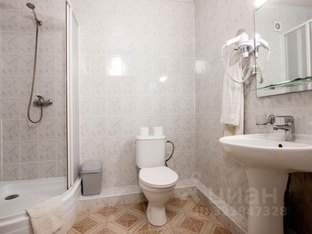 Два санузла на три номера находятся в холле: 2 душевые кабины, умывальник, биде, туалет, фен, зеркало, набор полотенец, освежитель воздуха, туалетная бумага + дополнительный санузел (умывальник, туалет).