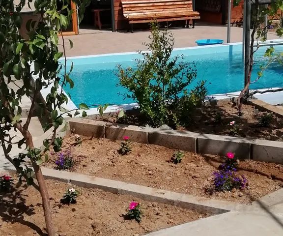 Если вы устали от городской суеты и ищите отдых вдали от шума, дискотек - ЖДЁМ ВАС К СЕБЕ В ГОСТИ. Сдается дом с бассейном. Дом находится в тихом, экологически чистом месте. Садовое товарищество расположено в 7 минутах пешком от поселка. Дом двухэтажный 170м2, для большой семьи или дружной компании. Возможно размещение до 12 человек. На 1 этаже расположены большая гостинная со смежной комнатой, кухня со всем необходимым (микроволновая печь, электрочайник, газовая плита, посуда, мультиварка), туалет и душ. На 2 этаже 3 раздельные комнаты, туалет и душ, небольшая кухонька с холодильником и электрочайником. На 2 этаже с балкона открывается вид на море. В каждой комнате есть кондиционеры. Также в доме есть стиральная машина. В доме и по всей территории есть бесплатный интернет, WI-FI. На территории бассейн, мангальная зона, беседки. Двор закрытый. На территории растет плетущийся виноград, есть фруктовый сад. Также есть детская комната с множеством игрушек для деток различных возрастов. До моря можно доехать на машине 7 мин., пешком идти минут 20-25. Пляж немноголюдны. В 15 минутах езды на машине есть пляж с более развитой инфраструктурой (столовые, кафешки, дискотеки). До ближайшей автобусной остановки 8-10 минут пешком. В селе есть магазины, продовольственный рынок,кафе. В поселке продаётся натуральная экологически чистая продукция (молоко, сыр, сметана, яйца). Также есть бесплатная стоянка для авто. Возможен трансфер (за дополнительную оплату). Поселок расположен в удобном месте для посещения различных экскурссий. Все крупные города, такие как Симферополь, Севастополь, Бахчисарай находятся от нас на расстоянии 35-40 км. До Евпатории от нас расстояние около 60 км. Дом находится на одной территории с домом хозяев. Мы обслуживаем территорию и помогаем вам при необходимости (помощь в уборке, смене белья). Те, кто любит тихий, семейный отдых вдали от шумных набережных и городской суеты - на природе, ПРИЕЗЖАЙТЕ.