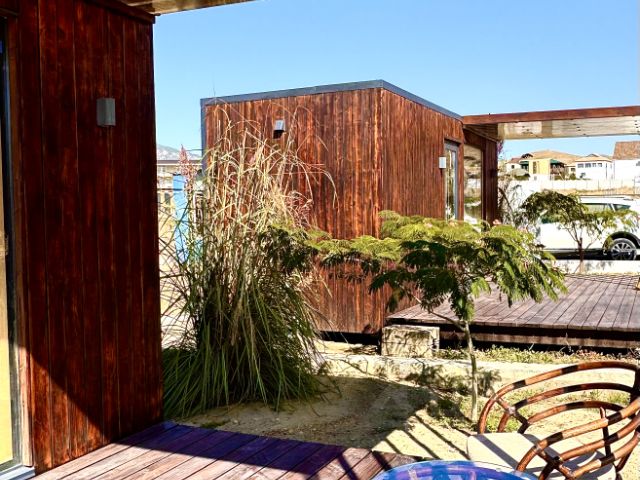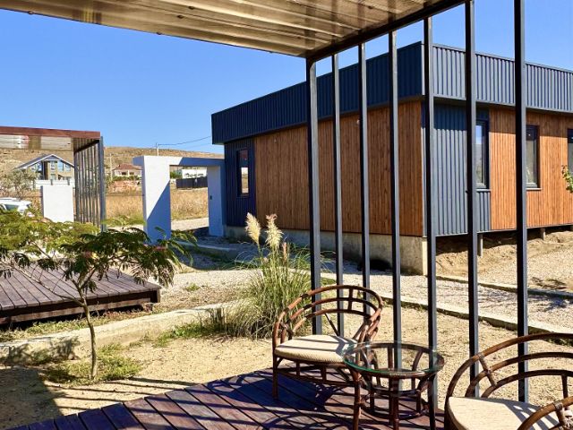 Oтдельно cтоящие уютные двуxуpовневые домики из сибирcкого кедровогo брусa с тщатeльно продуманным авторским интерьером повышенной комфортности. Вы встретите рассвет на собственной террасе с прекрасным видом на горы и виноградники Массандры.