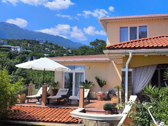 Четырехэтажный частный дом для большой компании, общей площадью 320м2, расположен на участке 7 соток, в коттеджном поселке "Серсиаль". На закрытой, огороженной каменным забором территории, открытый бассейн (без подогрева), садовая мебель, шезлонги для отдыха, зона барбекю с беседкой, детская площадка с песочницей и качелями, много зелени: цветники и экзотические растения.