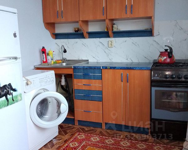 Удобная, большая кухня, новая стиральная машинка, стол, стулья, кухонный гарнитур, посуда, кровать, застеклённый балкон.