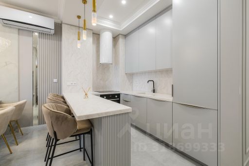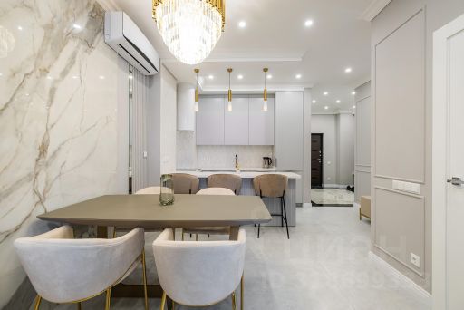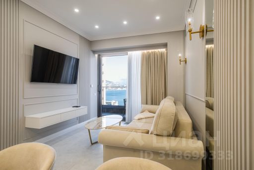 - Мебель из шпона дерева производства Италии и России, мрамор, шторы блэкаут, картины крымских художников на стенах