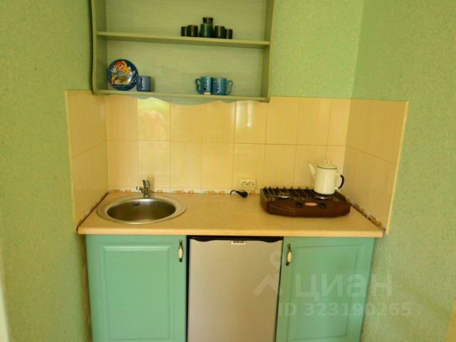 - кухня-гостинная - кухонный гарнитур (варочная панель, духовка, вытяжка, посудомоечная машина, микроволновая печь, 2-х камерный холодильник, электрочайник, тостер, столовые приборы, посуда для приготовления и сервировки). Диван-кровать 2-х спальный, телевизор LG 55", TV - тумба, обеденный стол со стульями.