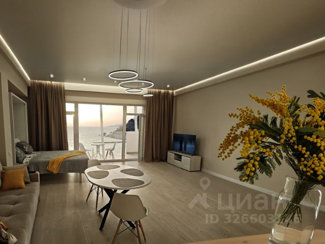 Панорамные окна: Главная изюминка апартаментов, открывающая потрясающие виды на море и горы, которыми можно любоваться бесконечно.