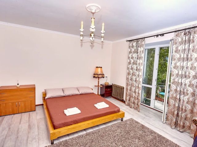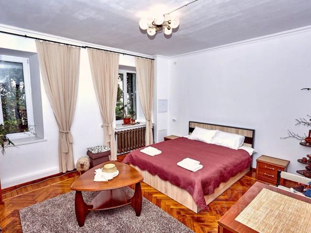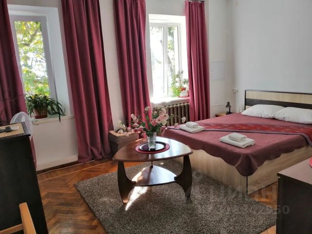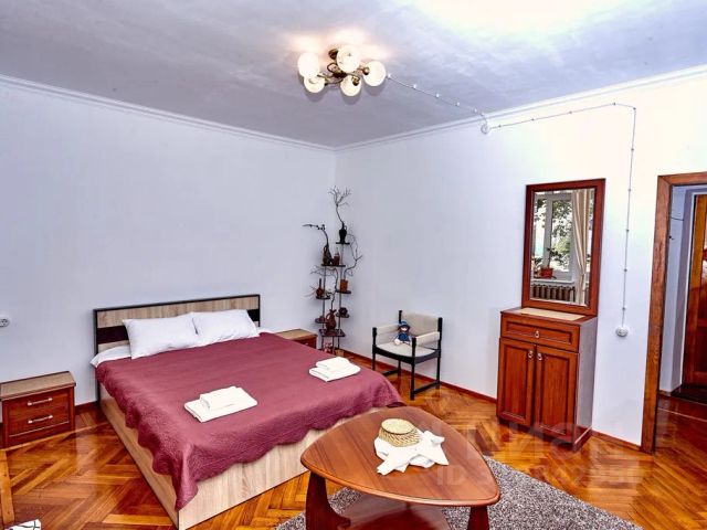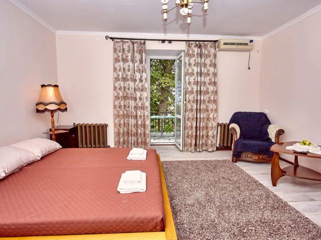 - Мебель из шпона дерева производства Италии и России, мрамор, шторы блэкаут, картины крымских художников на стенах