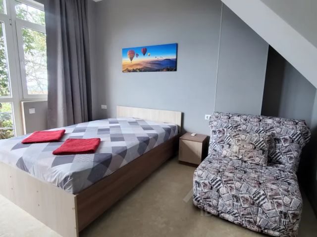 Квартира находится на 4 этаже и рассчитана на проживание 2 человек. Имеется двуспальная кровать и мягкий односпальный раскладной диван. Проживание с детьми и животными не предусмотрено.