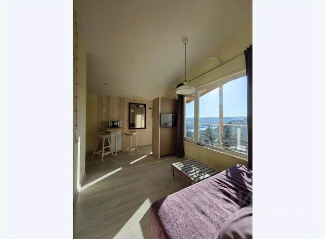 Из окон — вид на горы, окна выходят на запад. До набережной 15 минут спокойным шагом по парковой зоне или 2 остановки на автобусе. Черное море в 10-14 минутах неторопливой ходьбы по парковой зоне (одна остановка на автобусе). При возвращении с набережной отсутствует крутой подъем!