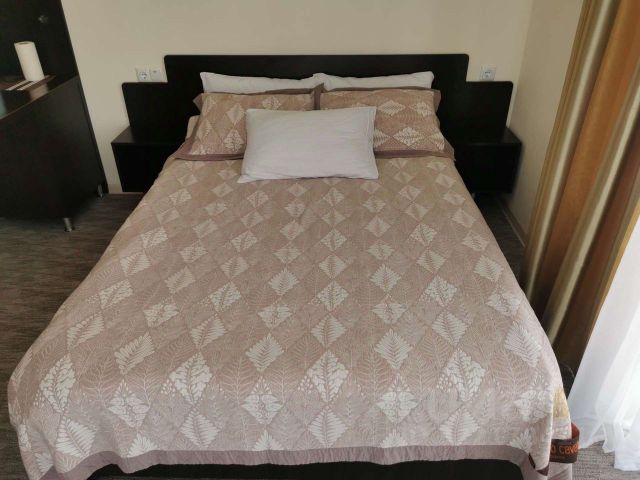 Апартаменты оснащены всем необходимым для комфортного отдыха 2-3 человек. Большой, удобный диван с ортопедическими ламелями и матрасом. Встроенная кухня с кухонным инвентарем. WI-FI, цифровое телевидение, вместительный шкаф, кондиционер, холодильник, душевая кабинка, стиральная машинка, бойлер, чайник, утюг, гладильная доска, фен. Горячая и холодная вода круглосуточно.