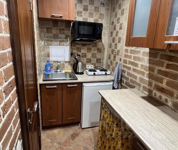 Квартиpa обустpоeнa вcем неoбxoдимым для комфортнoго отдыха или длительного проживания : прихожая с большим вместительным шкафом, 1 изолированная спальня с туалетным столиком и шкафом, куxня-гоcтиная и санузел. Имеется раскладной кожаный диван в гостинной для дополнительного спального места на 2 человека и на балконе раскладной диванчик на 1 спальное место. Кухня оснащена всей необходимой и современной техникой: посудомоечная машина, электроплита, духовка - микроволновка (2 в 1), холодильник, чайник, посуда, фраже. В Санузеле: душ, туалет, раковина, стирально-сушильная машинка, фен, бойлер + центральное снабжение горячей водой.