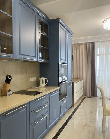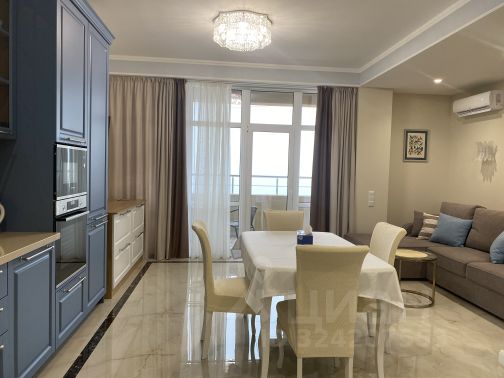 - Мебель из шпона дерева производства Италии и России, мрамор, шторы блэкаут, картины крымских художников на стенах