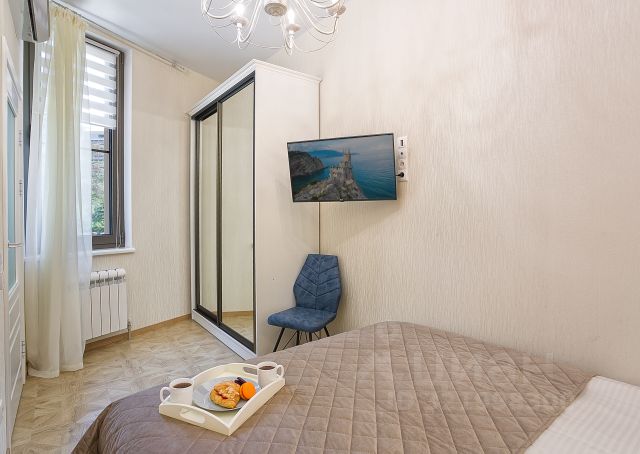Сдается с НОЯБРЯ на срок 6 месяцев! Апартаменты с отдельной спальней. Высокий, последний этаж. Панорамный вид на горы и море. Закрытый комплекс, охраняемая территория. Бесплатная парковка. 5 Бассейнов. Лаундж зоны. Нейродинамичные площадки для детей. . Спа комплекс. Спортзал. Ресторан. Благоустроенный пляж в 30 м. Набережная с развлечениями, ресторанами и кафе. Всего в 2-х мин. у подножия горы "Алчак" оборудована мангальная зона с беседками, где можно приятно провести время с друзьями. Об апартаменте: Новый, современный ремонт. Отдельная спальня с кондиционером, телевизором, вместительный шкаф и двуспальная кровать. В гостинной двуспальный, комфортный диван, телевизор. Кондиционер. Кухонная зона оборудованна необходимой техникой (холодильник, индукц.плита, духовой шкаф, микроволновка, посудомоечная машина, чайник и вся необходимая посуда). Предоставляется постельное белье, полотенца.
