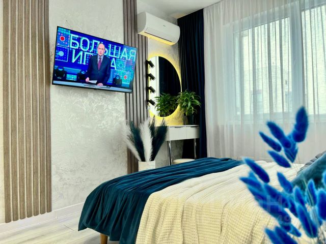 Заселение имеет возрастное ограничение! От 23 лет. Великолепный вид на город! Красочные закаты! Предлагается в аренду посуточно однокомнатная квартира с новым дизайнерским ремонтом. Квартира оборудована всем необходимым: телевизор, кондиционер, Wi-Fi, холодильник, микроволновая печь, плита, чайник, фен, утюг. Предоставляется постельное бельё, полотенце, тапочки. Территория двора охраняется! Во дворе детская площадка, зелёный двор, зона отдыха, беседки и лавочки. Парковка под видеонаблюдением. Имеются парковочные места для автомобилей. До центра города 57 минут езды. Хорошее транспортное сообщение, рядом с домом остановки общественного транспорта, магазины, рынки, салон красоты, медицинский центр, косметология. При заселении необходим документ, удостоверяющий личность. Время заселения — после 14:00. Время выселения — до 11:00.