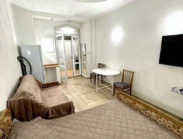 Сдаётся трёхместная студия 200 м до центральной набережной Ялты с балконом евроремонтом газовое отопление кондиционер двуспальная кровать плюс кресло санузел кухня внутри цена в сентябре 3.800 плюс-минус а остальное время года цена от 1.000 руб до пяти МТС Вайбера WhatsApp