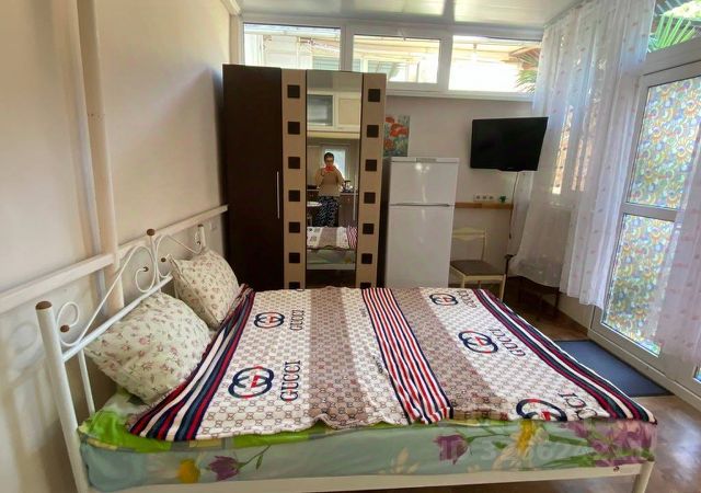 В Апартаментах имеется Двухспальная кровать, Диван , Шкаф-купе, Барная стояка, на балконе имеется летняя мебель, Кухонная мебель.