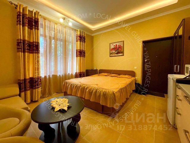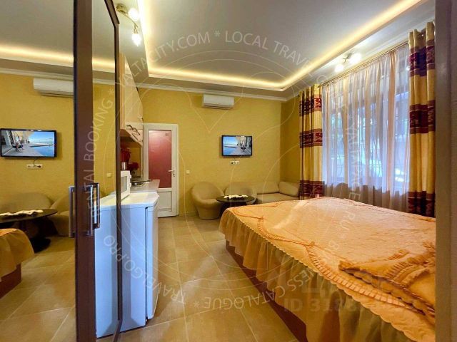 Апартаменты расположены на 3 этаже и рассчитаны на проживание 4 человек, можно с детьми. Имеется двуспальная кровать и мягкий двуспальный раскладной диван.