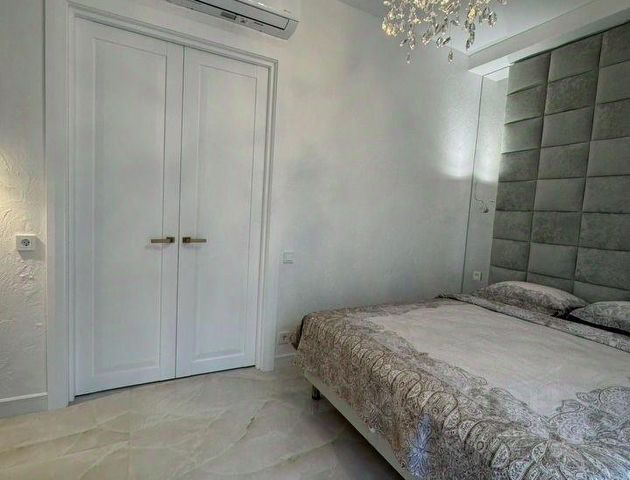В квартире выполнен свежий ремонт, и она полностью меблирована новой, качественной мебелью. Просторная спальня оснащена двухспальной кроватью и диваном-кроватью, а уютная студия с оборудованной кухней также имеет диван-кровать. В дополнение к этому, вы найдете прихожую, гардеробную, а также современный душ и туалет.