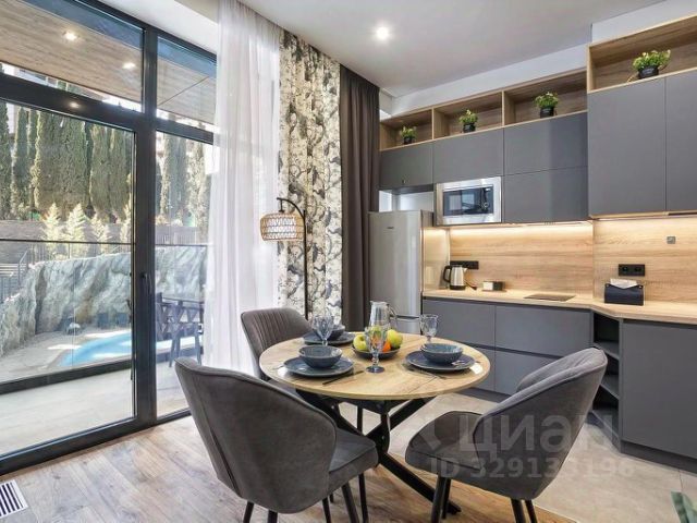 Медведь гора и Артек, Адалары и Красный камень. И это всё вы будете видеть каждое утро. Наслаждаясь рассветами и закатами! Квартира очень уютная. Имеется всё необходимое для жизни и отдыха. Нужно только ваше хорошее настроение! В доме имеется бассейн подогреваемый, и он в вашем пользовании. Прекрасное кафе с открытой печью, где пекут пиццу и готовят много вкусных блюд. В трёх минутах ходьбы СПА центр. До моря 20 минут пешком. Ходит трансфер (платно). Цена меняется по месяц ам Май -3500 Июнь-4000-4500 Июль 5500 Август 6000 Сентябрь- 5000-4500 Октябрь 3500
