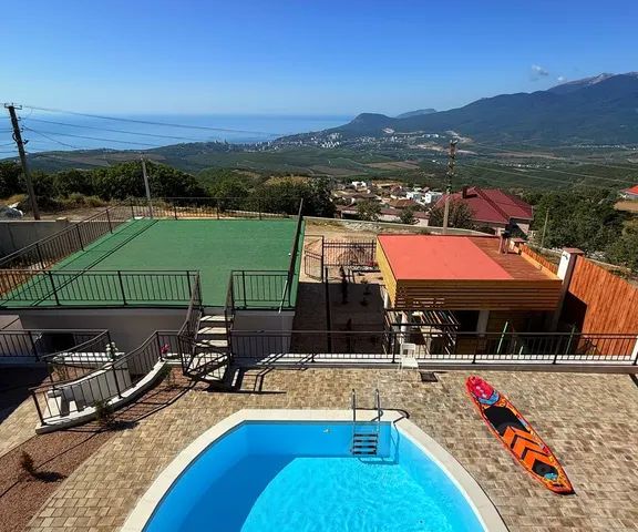 Номер в гостевом доме "Монтемаре" Расположение: Живописный уголок рядом с Алуштой, пос. Лучистое. Вид на горы и частично на море. Остановка автобуса — 2 минуты пешком. О апартаментах: Площадь: 25 м². Вместимость: до 4 человек (1 двуспальная кровать + раскладной диван, идеально для 2 взрослых и 2 детей). Полностью оборудованная кухня (вся посуда для 4 персон, техника). Современный ремонт, кондиционер, Smart TV, Wi-Fi. Постельное бельё, банные полотенца, средства гигиены (жидкое мыло, гель для душа) — предоставляются. Удобства на территории: Большой бассейн 6х6 м с подогревом, противотоком и подсветкой. Бесплатная парковка. Зона барбекю с мангалом, печью под казан (аренда — 500 руб./час). Для проживающих в апартаментах скидка 1000 руб. за 3 часа. Лежаки, зонты. Дополнительно: Стиральная машина и гладильные принадлежности — по запросу. Возможна долгосрочная аренда (цена обсуждается индивидуально). Стоимость: Указана за проживание 2 взрослых и 2 детей.