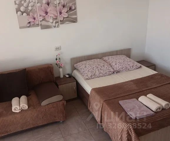 Внимание!!! В Коктебеле продолжается реконструкция набережной, центральная часть набережной закрыта. Открыты пляжи: Юнге, Белый Грифон, Карадаг, Тихая бухта. Сдаётся посуточно двухэтажная квартира с террасой 48 кв.м. на земле в пгт Коктебель в дачном массиве недалеко от моря (700 м), с двумя входами, 2 кондиционерами, Wi-Fi, TV через интернет, с кухонной зоной, 2 совмещенными санузлами, балконом, постоянным водоснабжением по адресу улица Аксенова, 22/1 рядом с отелем Медведь. Расстояние до моря и набережной с аквапарком и дельфинарием 700 м, ближайший магазин 200 м, до рынка - 600 м, автостанция - 850 м. Первый этаж: кухонная зона (рабочая зона кухни, микроволновка, эл. чайник, индукционная плита, холодильник, водонагреватель, посуда и кухонные принадлежности, бытовая химия), двуспальная кровать и двуспальный диван-кровать, стол обеденный, 4 стула, комод, вешалка для одежды, гардеробная, пуфик, постельное белье, журнальный столик, телевизор, кондиционер, санузел (душевая кабина, подвесная раковина с зеркалом, унитаз, стиральная машина, полотенца, рукав для сушки полотенец, утюг с гладильной доской, туалетные и ванные принадлежности, бытовая химия, водонагреватель, сушилка для белья). Зона отдыха: мангал с закрытым огнем, столик и два стула. Второй этаж: диван кровать 1,5, постельное белье, кондиционер, столик раскладной с настенной полкой для посуды, стул, телевизор, шкаф, горка для тв, холодильник для напитков, санузел (душевая кабина, подвесная раковина с зеркалом, унитаз, полотенца, туалетные и ванные принадлежности, бытовая химия, водонагреватель, водоснабжение постоянное (центральное и автономное). Терраса: ротанговые 2 стола и 2 кресла, 2 кресла-мешка, надувной бассейн. Разрешено размещение с детьми любого возраста, домашними животными (собаками мелких пород по договоренности). Запрещено курение в квартире (на террасе и зоне отдыха есть места для курения). Заезд после 14.00, выезд до 10.00. В квартире предусмотрено размещение не более 4 человек, включая детей. Сдается первый сезон. Минимальный срок бронирования 7 суток.