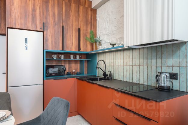 -Укомплектованная кухонная зона индукционная плита, эл чайник, микроволновая печь, холодильник, посуда и столовые приборы
