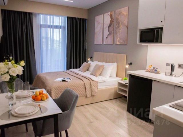 В апартаментах также имеются: холодильник, электрочайник, посуда, душевая кабина, полотенца, фен, одноразовые средства личной гигиены, санузел, холодная и горячая вода круглосуточно, вид на море, город и горы. На 1-ом этаже здания работает пиццерия MAMASITA, кофейня, столовая (без обслуживания в апартаментах).
