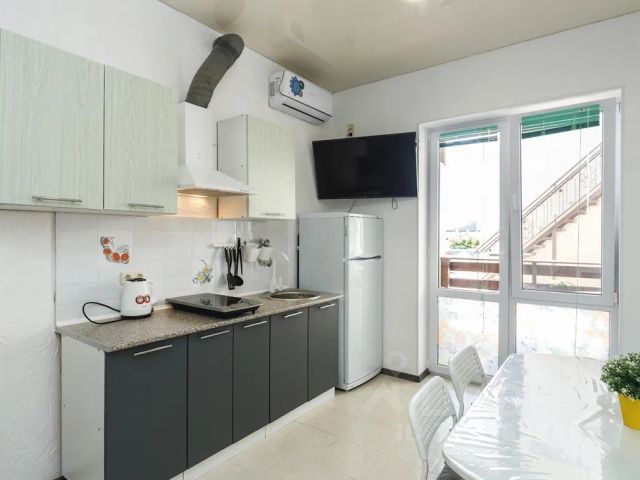 телевизор, холодильник, электроплита, чайник и вся необходимая посуда для приготовления еды самостоятельно
