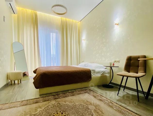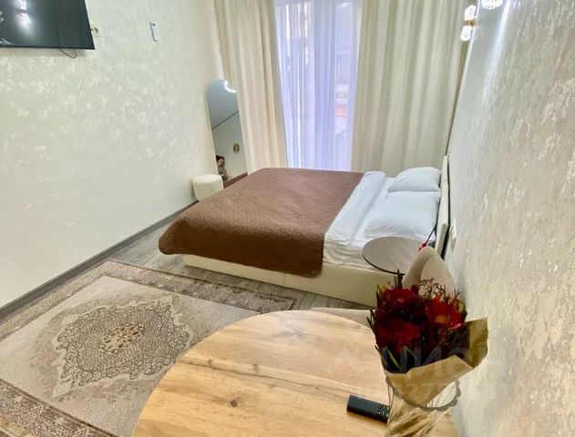 * В комнате две односпальных кровати, кресло-кровать, шкаф-купе. В кухонной зоне имеется всё необходимое: двухкамерный холодильник, электроплита, микроволновая печь, набор посуды для приготовления еды, столовые приборы. В санузле есть душ (вода круглосуточно, горячая, холодная).