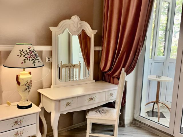 - Мебель из шпона дерева производства Италии и России, мрамор, шторы блэкаут, картины крымских художников на стенах