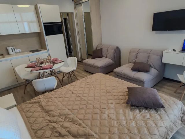 Сеть недвижимости посуточной аренды "ПОГУЛЯЙ в АЛУШТЕ" предлагает отдохнуть в Люкс-Студии, которая расположена в элитном комплексе "Крымская Резиденция" . На открытом балкончике с панорамными видами на Черное море и горы, сидя в удобных креслах, Вы можете утром наслаждаться горячим кофе, а вечером встречать закаты с холодным Крымским Шампанским! В красивой и уютной Студии можно незабываемо провести свой отпуск или романтические выходные. Здесь есть все необходимое для комфортного проживания до 3-х человек. ЧТО В НОМЕРЕ: — широкий двуспальный диван, раскладное кресло-кровать, необходимая мебель, — постельное белье и полотенца, — кухонный гарнитур с посудой. — бытовая техника: кондиционер, плоский телевизор, Wi-Fi, холодильник, электрочайник, посудомоечная машина, микроволновая печь, стиральная машина, а также утюг с гладильной доской, фен, сушилка для белья. — средства гигиены: гель для душа, шампунь, жидкое мыло для рук. ЧТО НА ТЕРРИТОРИИ КРЫМСКОЙ РЕЗИДЕНЦИИ: — Зоны ожидания в фойе с мягкой мебелью: диваны и кресла, туалет - в каждом корпусе на первом этаже. — Зоны отдыха возле каждого корпуса с шикарными видами на море. — Мангальная зона с беседкой - для Гостей бесплатно. — Зоны с тренажёрами на открытом воздухе. — Крупный фитнес-центр (600 м²). — Паркинг подземный с видеонаблюдением - предоставляет УК по факту, при наличии свободных мест, цена 525 руб. за сутки (в стоимость проживания не входит). — Парковка вдоль дороги - бесплатно. — Кафетерий, бистро, продуктовый магазин, ПВ Wildberries и Ozon. — Через дорогу остановка общественного транспорта. ЧТО РЯДОМ: А также, буквально в километре от Крымской Резиденции в сторону Профессорского уголка очень развитая инфраструктура: многочисленные столовые, кафе, рестораны, Аквапарк, Колесо обозрения, экскурсионные ларьки, торговые точки. Если спустится в другую сторону, там расположены Автовокзал, Супермаркеты, овощные рынки, мясные и молочные ларьки. СКОЛЬКО ДО МОРЯ: До моря можно пройти пешком 10 мин. спустившись вниз и выйти рядом с Аквапарком на Набережную, где расположена большая протяженность лучших санаторских пляжей Алушты. Или же доехать на троллейбусе или маршрутке, всего одну остановку. Скорее приезжайте и отдыхайте! А мы с радостью ждем наших Гостей!