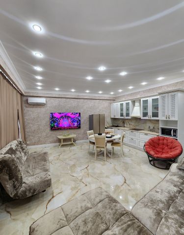 Потрясающий пейзаж с высокого 7-го этажа с боковым видом на море и горы, контрастные элементы дизайна обеспечивают яркий утренний старт, а удобная мебель, продуманная планировка и комбинация освещения семи вариантов светильников - создадут расслабляющую атмосферу вечернего уюта.