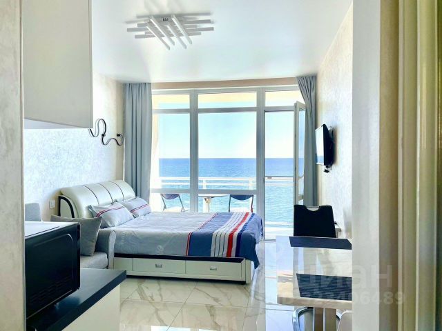 Сдаётся просторная квартира-студия с шикарном видом на море 52 кв.м. Апартаментый комплекс находится в 50 метрах от моря . Новый ремонт. В шаговой доступности находится гостиничный комплекс Ялта Интурист Массандровский парк с огромной территорией для прогулок, зоопарк, аквапарк,рестораны, зоны отдыха. На территории комплекса имеется бассейн с морской водой с видом на море . сдаю с 01.10.25 по 25.04.26