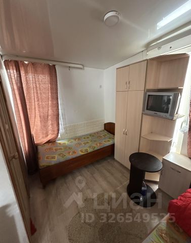 Широкая, большая комната, в комнате есть два раскладных кресла, раскладной диван, 2 тумбочки, стенка горка, вместительный шкаф, 2-й балкон застеклён.