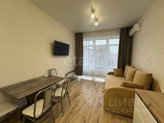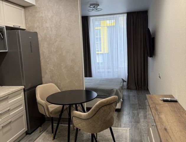 Сдаётся уютная студия с евроремонтом в Симферополе на Общественной улице, 27. Квартира в современном доме всего на три этажа, находится на втором этаже. Общая площадь — 26 кв. м, жилая — 12 кв. м, площадь кухни — 5 кв. м. Окна выходят во двор, поэтому в квартире тихо и спокойно. В квартире есть всё необходимое для комфортного проживания. Кухня обставлена мебелью и оборудована современной техникой: холодильник, кондиционер, телевизор и стиральная машина. В совмещённом санузле установлена душевая кабина. В комнате также есть мебель, что позволяет сразу заехать и жить без дополнительных хлопот. Дом в хорошем состоянии, рядом есть наземная парковка, поэтому можно не беспокоиться о месте для автомобиля. В доме проведён интернет, что будет удобно для работы из дома или развлечений. Район предлагает всё необходимое для комфортного проживания. В пешей доступности расположены школы, детские сады, клиники и магазины.