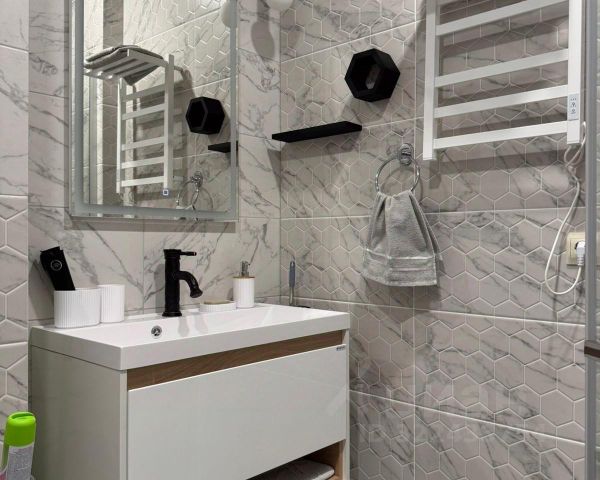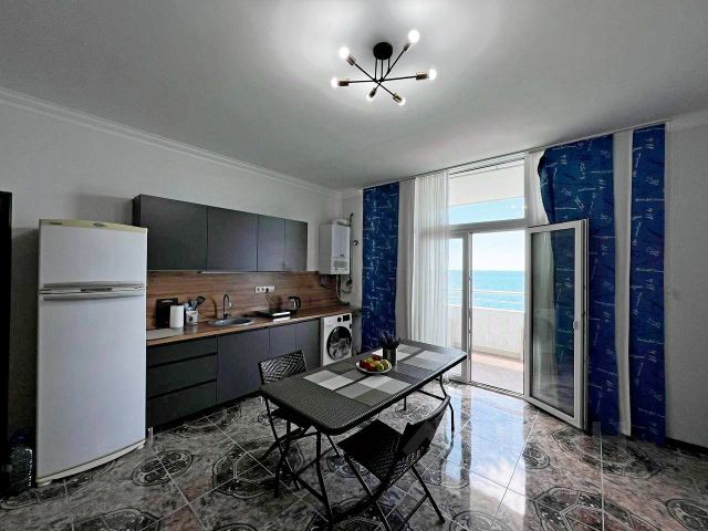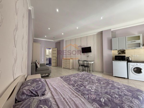 Квартира светлая, с новoй мeбелью - кровать двуспальная с ортопедическим матрасом и прикроватными тумбочками, вместительный шкаф с зеркалами в полный рост, обеденная группа, угловой диван разборный, комплект комфортной мебели из искусственного ротанга (два кресла и столик) для отдыха (на фото нет) и качественной тeхникой (сплит система "тепло/холод", водонагреватель, полотенцесушитель, в санузле тёплый пол, SMART-телевизор, wi-fi, микроволновая печь, умный электрический чайник, холодильник, утюг, фен, плита, духовой шкаф, пылесос, гладильная доска, сушилка для белья, посуда и постельное белье).