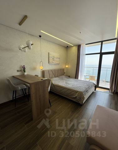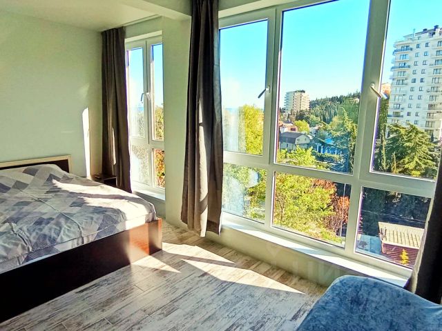 Студия расположена на 7 этаже, с балкона открывается великолепный боковай вид на море и горы. В студии сделан качественный ремонт и