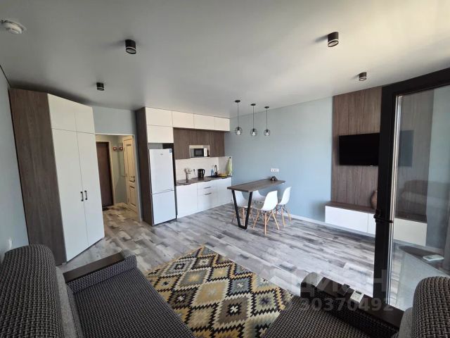 33 м2, дизайнерская студия с боковым видом на море и горы с верхних этажей Жилого комплекса Крымская резиденция в г. Алуште Дизайн апартамента выполнен в соответствии с последними тенденциями в области дизайна и технического оснащения. Уютный, в сочных оттенках апартамент выполнен в стильной контрастной цветовой гамме, отражающей эмоции летних дней, проведенных в нашем курортном городке. Кухонная зона, оборудованная встроенной техникой, плавно перетекает в зону отдыха, разделением которой служит компактный обеденный стол, с подсветкой, создающей уютную обстановку и романтическое настроение. В центре помещения стоит двуспальная кровать, размещенная близ панорамных окон, с видом на яркие вечнозеленые растения. Недалеко расположен гардероб, прихожая, большое зеркало. Для вашего большего комфорта в углу комнаты имеется также консольный столик с зеркалом, служащий туалетным столиком либо, выполняющий функцию рабочей зоны. Смарт ТВ, с диагональю 55 дюймов на телескопическом кронштейне позволит окунуться в виртуальный мир из любого уголка студии, зайти в свой профиль и наслаждаться музыкой из плейлиста. Уединенный санузел с душевой кабиной, с тропическим душем и вертикальной подсветкой расположен ближе к выходу. В апартаментах сервис-центра УК Стиль жизни вы получите максимум удобства, а также полный спектр гостиничных услуг. Наши сотрудники доставят в апартамент свежие продукты, завтраки, подготовят апартаменты к романтическому вечеру Проверяйте доступность апартаментов и бронируйте онлайн, оплачивайте картой или другим удобным для вас способом. Мы рады каждому нашему клиенту и всегда готовы оказать помощь в организации необходимых услуг - Фотосъемка - Экскурсии - Отдых в самых лучших заведениях Алушты Мы ждем вас Сдаю квартиру-студию на месяц в Алуште.