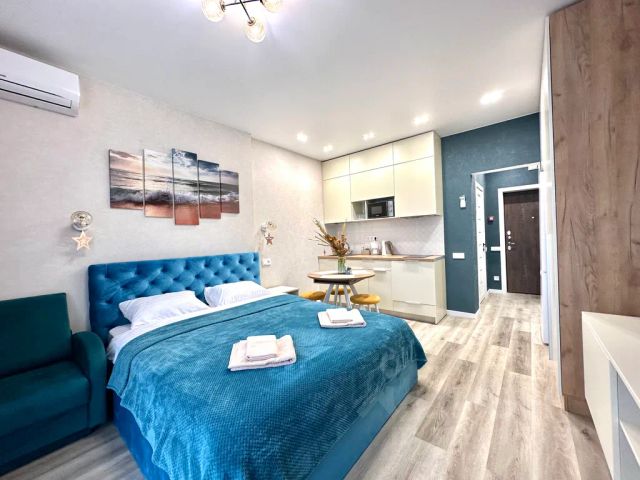 Дизайнерская студия "LS-BLUEBERRY" "Стиль Жизни" с собственной кухней, отдельным санузлом С самым прямым видом на море Бронируйте апартаменты у нас - мы рады каждому гостю! Выбирая апартаменты "LS-BLUEBERRY" Вы получаете не только комфортную обстановку и гостиничный сервис, но и массу впечатлений и новых эмоций по очень доступной цене Отдохните с чашечкой кофе (кофе и приятные мелочи входят в стоимость) Отвлекитесь от дел с психологической игрой "Искренность" (игра выдается под запрос) Вдохните свежего воздуха в окружении бескрайнего моря и гор Данные апартаменты идеально подходят для отдыха и бизнес поездок: Одному гостю Паре Для семьи с ребенком Командированным Командированным предоставляем отчетные документы - скидки на проживание (питание, такси, доставка включена в стоимость) В каждых апартаментах комплименты! Подыскиваете квартиру на сутки в самом центре Алушты, в районе профессорского уголка? Прямое предложение! Без комиссий и посредников! Квартира посуточно в самом центре Алушты. Рядом: Аквапарк, кафе и рестораны, ночные клубы, кинотеатр, пляжи с шезлонгами, экскурсионные бюро, морские прогулки и многое другое Аквапарк "Миндальная роща" 500 м Пляжи Профессорского уголка 540 м Дельфинарий Акварель 770 м Парк Крым в миниатюре 780 м Дом-музей А. Н. Бекетова 820 м Набережная Алушты 840 м Алуштинский аквариум 870 м Пляж у набережной Алушты 980 м Крепость алустон 1.1 км Достопримечательности Краеведческий музей 1.3 км Дача "Голубка" 1.4 км Королевский пляж 1.6 км Дельфинарий немо 1.7 км Гора кастель 3.1 км Аквапарк "Миндальная роща" 500 м Пляжи профессорского уголка 540 м Дельфинарий акварель 770 м Парк крым в миниатюре 780 м Дом-музей А Н. Бекетова 820 м Набережная Алушты 840 м Алуштинский аквариум 870 м Пляж у набережной Алушты 980 м Огромное количество кафе, ресторанов и развлекательных центров, ведь это центр Алушты Удобная транспортная развязка. Описание квартиры с посуточной арендой в центре Алушты: Чистая квартира с оригинальным современным ремонтом отлично подойдет для гостей, которые ценят уют и качество. Наличие в одной комнате двуспальной кровати и кресла-кровати с жк телевизором и вместительным шкафом позволяет разместить до 3 человек. Бесплатно каждому посетителю, одноразовые тапочки, гель для душа и шампунь. Круглосуточный ресепшн и охрана. В квартире имеется вся необходимая мебель, которая нужна для комфортного проживания. Есть вся необходимая бытовая техника: холодильник, варочная панель, посудомойка, стиральная машина, микроволновка, утюг, фен и т. д. Высокоскоростной бесплатный интернет wi-fi, жк телевизор, цифровое tv. Даём гарантию качества. Если наши апартаменты вам не понравятся, то возвращаем деньги. При выезде дарим денежные сертификаты со скидкой на следующее заселение. Вот ещё выгоды заказывать посуточную аренду квартир у нас: 100% гарантия заселения при бронировании. 100% гостиничный сервис, а значит чистота и порядок. Круглосуточное заселение, арендуйте в любое время суток. Удобная оплата, принимаем нали