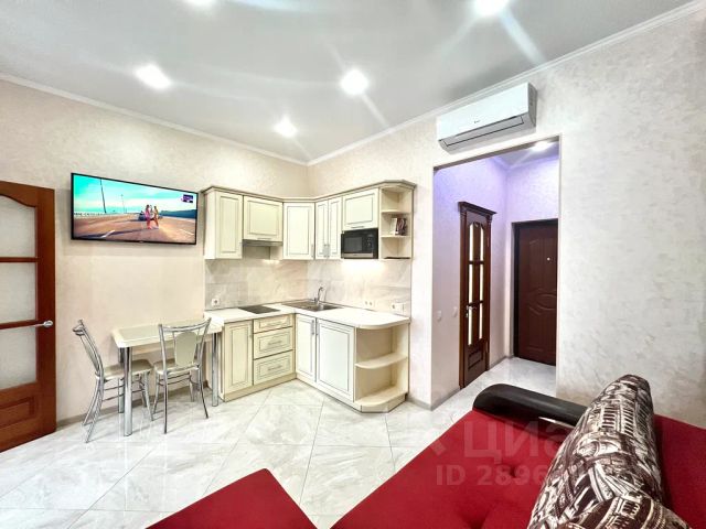 Желаете провести свой отдых на самом берегу моря? Апартаменты на первой линии от моря позволят Вам незабываемо провести время! Квартира-студия расположена на берегу песчаного пляжа, до моря 20 метров. Пляж оборудован зонтиками, берег чистый. Красивая территория, ухоженный охраняемый двор, в котором имеется детская площадка. Стоянка для автомобилей на территории дома,которая полностью закрыта. В шаговой доступности столовая, кафе, мини рынок. В квартире имеется все для комфортного отдыха: 1)Балкончик с видом на море; 2)Кухня (полностью укомплектованная); 3)Санузел (горячая и холодная вода подаётся постоянно); 4)Стиральная машинка, телевизор, кондиционер, микроволновка, холодильник, одноразовые тапочки, фен, wi-fi Студия рассчитана на четыре человека.
