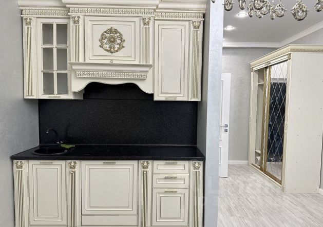 * Кухня с обеденной зоной, оборудованная всем необходимым- индукционная плита, вытяжка, микроволновая печь, холодильник, вся посуда, столовые приборы. Из кухни есть отдельный выход на балкон с установленной выдвижной москитной сеткой.
