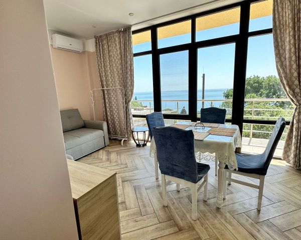 Двухкомнатная квартира в центре Ялты у пляжа от собственника (220 м до пляжа, 350 м до набережной). На расстоянии до 5 минут ходьбы находятся не менее семи столовых, пиццерии, бургерные, бюджетные и элитные кафе и рестораны на выбор, множество магазинов, вещевой рынок. При этом сама квартира находится в тихом дворе, из окон комнаты видно горы, под окнами комнаты и кухни зелень.