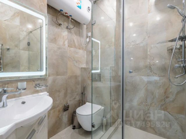 * Просторная ванная комната с теплым полом, ванной, биде и туалетом.