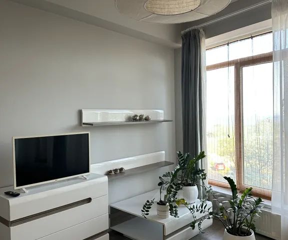 - Мебель из шпона дерева производства Италии и России, мрамор, шторы блэкаут, картины крымских художников на стенах