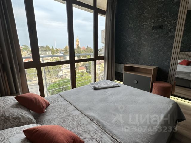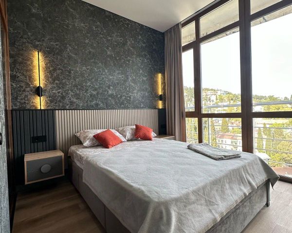Сдается до Мая квартира с панорамным видом на море и Ялту. Кухня гостинная + спальня. Два Санузла. ЖК Palma de La Mer- клубный дом комфорт-класса, расположен всего в 200 м от моря и в 2 км от Центральной набережной Ялты. Дом 2014 года постройки. Закрытая охраняемая территория, зона барбекю. В 5-ти минутах ходьбы от гостиницы и пляжей Ялта-Интурист, Массандровского парка. В пешей доступности от центра города и в то же время в стороне от городской загазованности . Пляж ближайший 200 метров. Это одно из самых экологически чистых мест в Ялте
