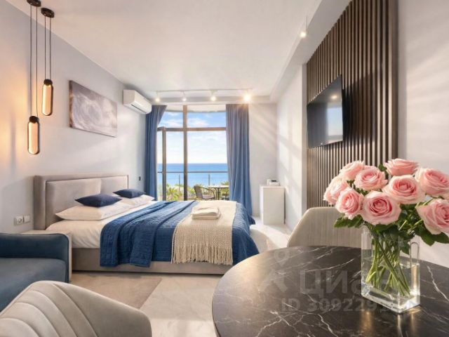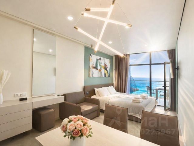 Сдается уютная студия в первой береговой линии. Идеальный вариант для тех, кто хочет засыпать под шум прибоя и завтракать с видом на море! Главное преимущество от подъезда до оборудованного пляжа 9 метров, не нужно брать такси или идти по жаре море прямо у порога. В квартире есть все для комфорта 4 человек - большая двуспальная кровать с ортопедическим матрасом + удобный двуспальный диван; техника: кондиционер, стиральная машина, телевизор, холодильник, микроволновая печь, плита; вся необходимая мебель, шкаф для хранения вещей, посуда, постельное белье, полотенца. Панорамный вид на морской горизонт. В шаговой доступности кафе, магазины, прогулочная набережная