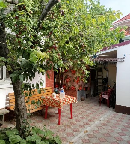 Во дворе два дома,проживает одна хозяйка. Дом для гостей на летний сезон сдаётся посуточно, предоставляю гостям всё что необходимо для отдыха. Двор для авто гостей и отдельная зона отдыха с летней кухней, ближайший пляж Солярис,заново отстроенная набережная Терешковой с новым пляжем.Всё необходимое в шаговой доступности.