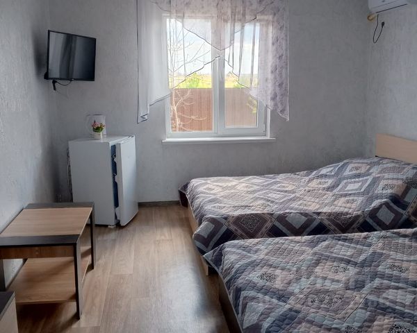 Коттедж расположен на первой линии на большой закрытой территории на берегу Азовского моря в г.Щелкино. Чистый песочно-ракушечный пляж находится в 100 метрах от коттеджа. На территории новый современный теннисный корт, детская спортплощадка, мангальная беседка. Коттедж рассчитан на комфортное размещение семьи из 4-6 человек, площадью 70 кв.м.