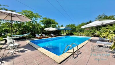 КОД 1343 Трехэтажный дом, 300 квадратных метров, на земельном участке 8 соток.Территория оформлена в двух уровнях: Первый уровень: просторный бассейн с подогревом (работает с мая по сентябрь) и разной глубиной (от 1.5 до 3х метров); беседка с кроватью, зона барбекю с летней мебелью, лежаки. Второй уровень: ротонда, садовые качели для отдыха с видом на море, летняя мебель расставлена в тени виноградника. В доме выполнен качественный капитальный ремонт 2023 года. Двери из массива дуба, паркет, авторская мебель (из массива дерева), мраморный камин (декоративный). В каждой комнате - кондиционеры и шторы блэк-аут. Отопление электрическое (новый дизельный мотор). Для большой компании есть возможность дополнительно арендовать соседний домик с сауной и детской игровой зоной. РАЗМЕЩЕНИЕ Основной дом Первый этаж: холл. Гостиная с несколькими зонами: каминной и столовой, раскладным диваном. Кухня с обеденной зоной (в наличии: холодильник, гриль, кофе-машина, тостер, чайник, посудомоечная машина). Санузел с душевой совмещены. Прачечная. Второй этаж: холл, спальня с двуспальной кроватью и выходом на просторную террасу с летней мебелью и видом на море. Спальня с двуспальной кроватью и кабинет совмещены. Детская с двумя односпальными кроватями. Санузел с ванной совмещены. Третий этаж: Просторная детская с игровыми зонами и пятью односпальными кроватями. Санузел с душевой совмещены. Услуги за дополнительную оплату: Массажист Повар Трансфер ИНФРАСТРУКТУРА Закрытая придомовая территория 8 соток Бассейн с подогревом (работает с мая по сентябрь) Беседка с кроватью Зона барбекю с летней мебелью Ротонда с видом на море Качели Гостевой дом РАССТОЯНИЕ до моря 9 минут езды, 2.7 км до набережной Ялты 14 минут езды, 7.9 км Номер объекта: #1/540154/17790